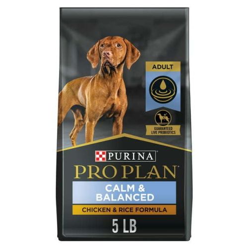 Introduce your dog to a delicious, complete and balanced dog food kibble that promotes calm behavior by serving them Purina Pro Plan Dog Food Calm & Balanced Adult Chicken & Rice Formula daily. This innovative formula includes Omega-3 fatty acids from fish oil to support calm behavior for dogs when fed daily for 12 weeks. Not only that, but each bite of this Purina dog food contains a blend of brain-supporting nutrients like DHA, EPA, antioxidants and B-vitamins to aid cognitive health. This high quality protein formula provides your dog with real chicken as its #1 ingredient to help your dog maintain strong muscles. Fortified with live probiotics for dogs, this recipe helps promote healthy digestion and optimal nutrient delivery while simultaneously bolstering dogs’ immune systems. To keep your dog looking their best, Omega-6 fatty acids and vitamin A are included for skin and coat health, while glucosamine for dogs helps dogs maintain joint health and mobility. This formula is free of artificial flavors or colors to give your dog everything they need without the ingredients they don’t. Each bag of Purina dog food is proudly manufactured and rigorously tested for quality and safety in Purina-owned facilities. Try this Pro Plan dog food risk-free.