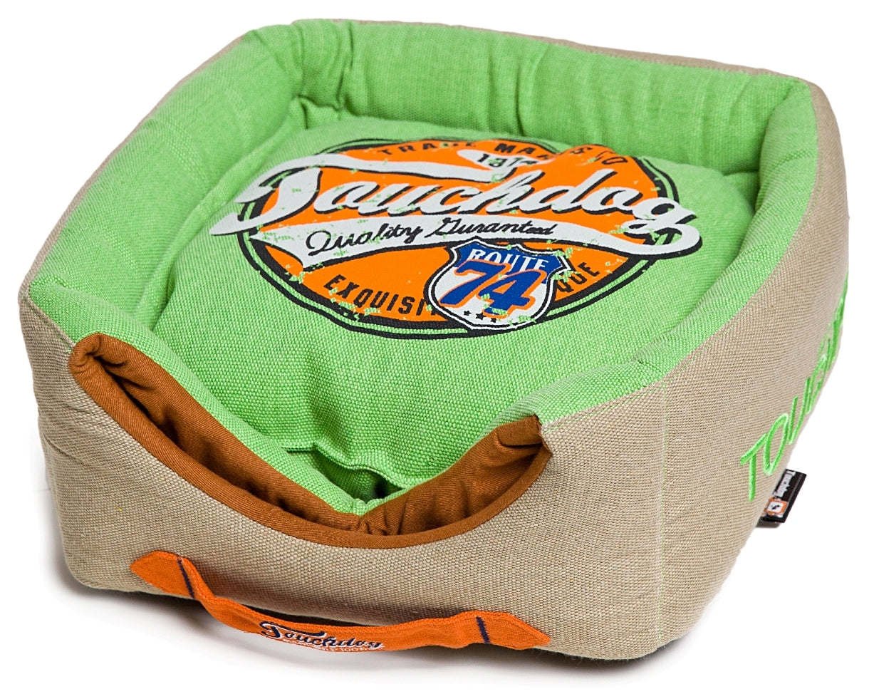 The Touchdog Convertible and Reversible Vintage Printed Squared 2-in-1 Collapsible Dog House Bed is composed of a blended Nylon-Cotton Exterior shell with a Reversible and Removable Pillow Cushion containing a Thicker Grade of Polyfill featuring the Touchdog Vintage trade stamp of perfection. The memorized stitching allows this unique Dog Bed to convert into a Mini Indoor Pet House setting by an easy push of the top. Completed with accented trims and a built-in side carrying handlebar, Touchdog sets the plethora of quality. Additionally our Dog Beds Feature Embroidery along the front with a unique designer vintage print on the reverse cushion. Touchdog, the leading Premium Pet Brand of Tomorrow. Available in Multiple Colors.